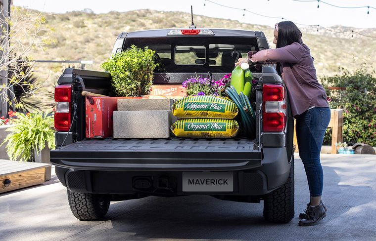La nueva Maverick Híbrida cuenta con dos tomacorrientes de 110 volts y 400 watts disponibles, uno en la caja y otro en la cabina, que pueden alimentar teléfonos, computadoras, televisores, o pequeñas herramientas.