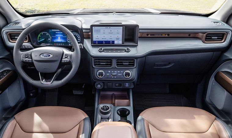 La Nueva Maverick Híbrida posee una pantalla multitáctil de 8" con SYNC 2.5, compatible con Apple Car Play & Android Auto, y un tablero de instrumentos con una pantalla digital de 6.5” desde donde el conductor podrá visualizar y controlar las distintas funcionalidades de la pick-up, sin quitar las manos del volante.