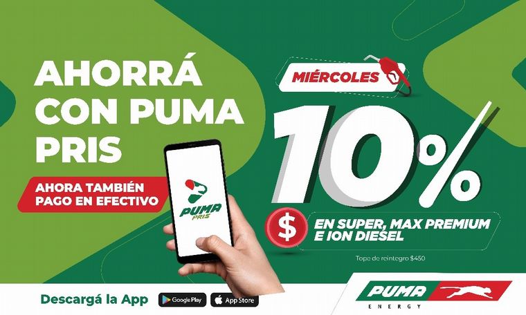 El beneficio es exclusivo para clientes que abonen sus cargas a través de su app PUMA PRIS, quienes tendrán un 10% de descuento todos los miércoles en combustibles Súper, Max, Premium e Ion Diésel (con un tope de $450) y sumarán puntos para canjear por más descuentos.