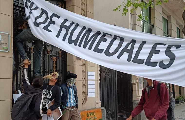 Ambientalistas se encadenaron a la sede de la Sociedad Rural por los humedales