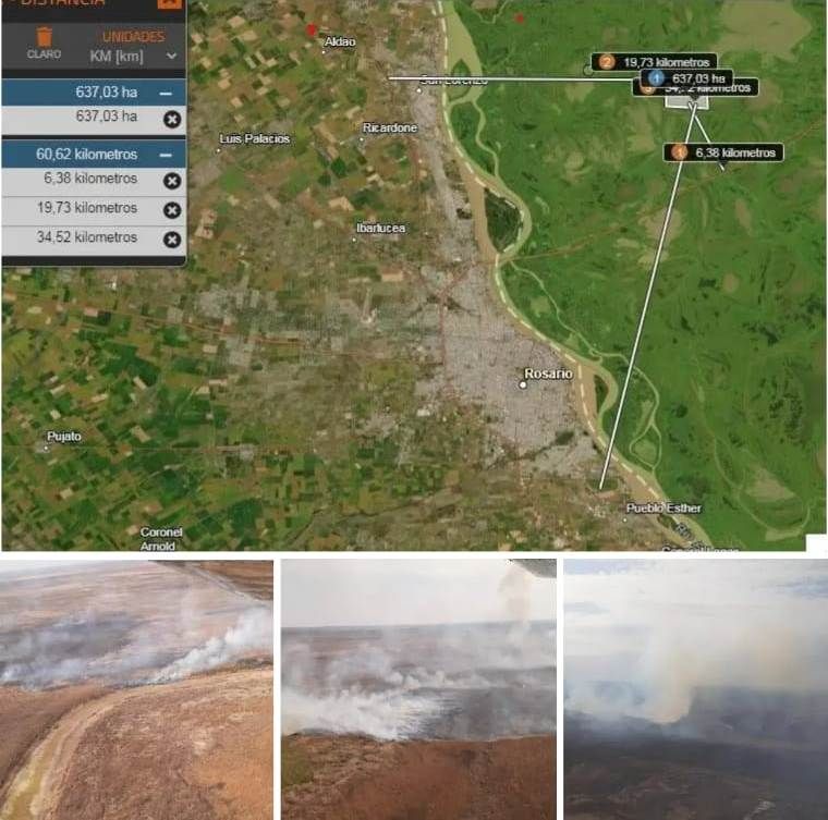 El Gobierno de la Provincia de Santa Fe informaron este sábado que se encuentra activo un foco de incendio en territorio de la provincia de Entre Ríos frente a la localidad de Granadero Baigorria.