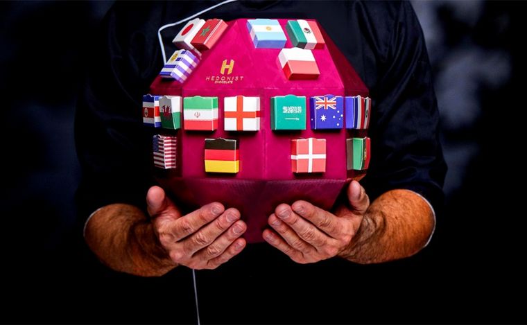 La chocolatería Gourmet Hedonist lanzó una edición limitada de 1.000 pelotas con sabores que representan a cada combinado nacional, con la idea de transmitir la emoción de la cita mundialista a través de sus chocolates y sus packagings.