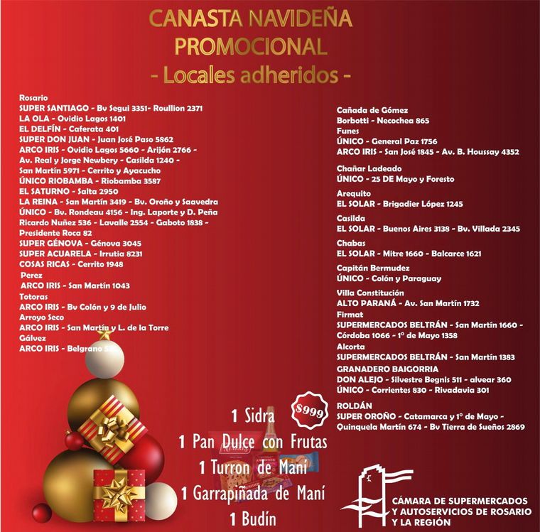 La Cámara de Supermercados y Autoservicios de Rosario (Casar) lanzó este viernes la tradicional canasta navideña promociona.
