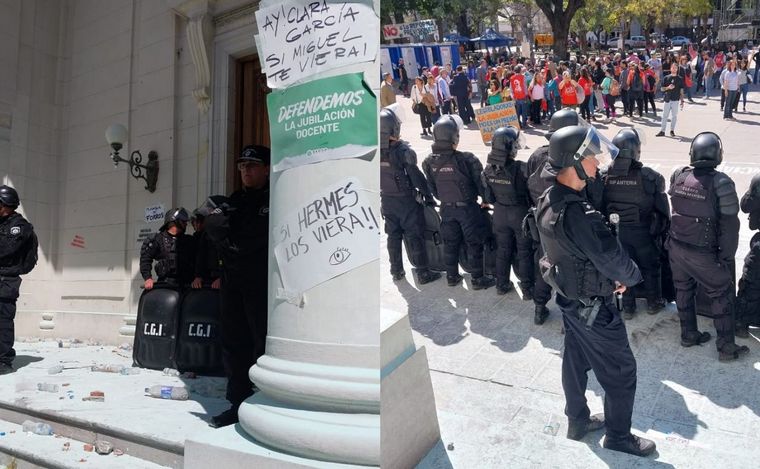 En tanto, el ministro de Justicia y Seguridad de la Provincia, Pablo Coccoccioni, informó que siete policías resultaron heridos durante los disturbios, uno de ellos con una esquirla de vidrio en un ojo.