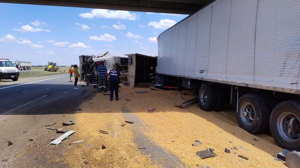 Audio. Accidente vial en Oncativo involucró a dos camiones y una máquina desmalezadora