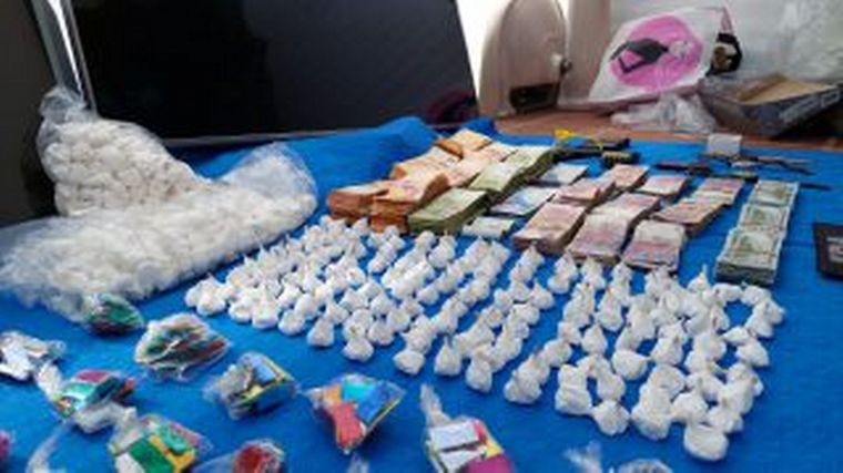 También lograron secuestrar 24 gramos de marihuana, dos plantas de cannabis sativa, 4.272.710 pesos y 27.638 dólares en efectivo, cinco automóviles y diferentes elementos de fraccionamiento de drogas. Hay 13 detenidos.