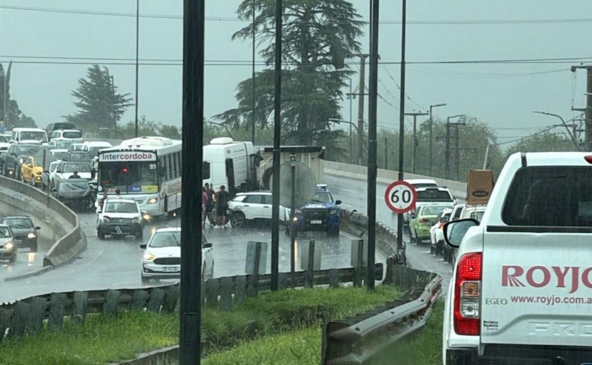 La intensa lluvia generó inundaciones en distintos puntos de la ciudad y provocó un grave accidente en cadena en el ingreso por avenida La Voz del Interior. Hay demoras y desvíos.
