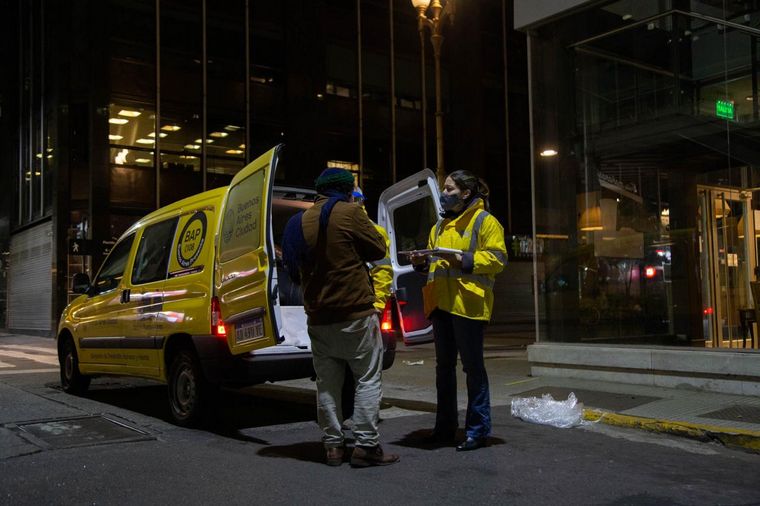 Los móviles del programa “Buenos Aires Presente” recorren de esta manera la ciudad, con refuerzos los días más fríos, y ofrecen traslados a los dispositivos. Cuando la persona se niega, le dejan los kits y elementos mencionados.