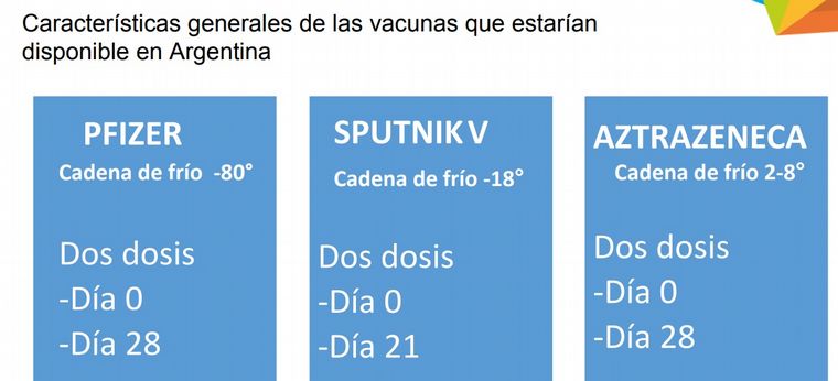 "La de Pfizer es la más compleja, porque requiere de una cadena de frío de -80 grados. La de Sputnik V, a -18 grados, también necesita una logística importante para la distribución. La que más se adecúa al uso es la de AstraZeneca o Oxford, de 2 a 8 grados", precisó.