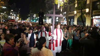 Se recorrió la Avenida de Mayo desde Bernardo de Irigoyen hasta la Plaza de Mayo para recrear la vía dolorosa de Jesús.