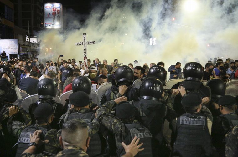 En medio de los reclamos de los vecinos y otros familiares de víctimas de la inseguridad, volaron algunas botellas y la policía respondió con balas de goma y gases lacrimógenos.