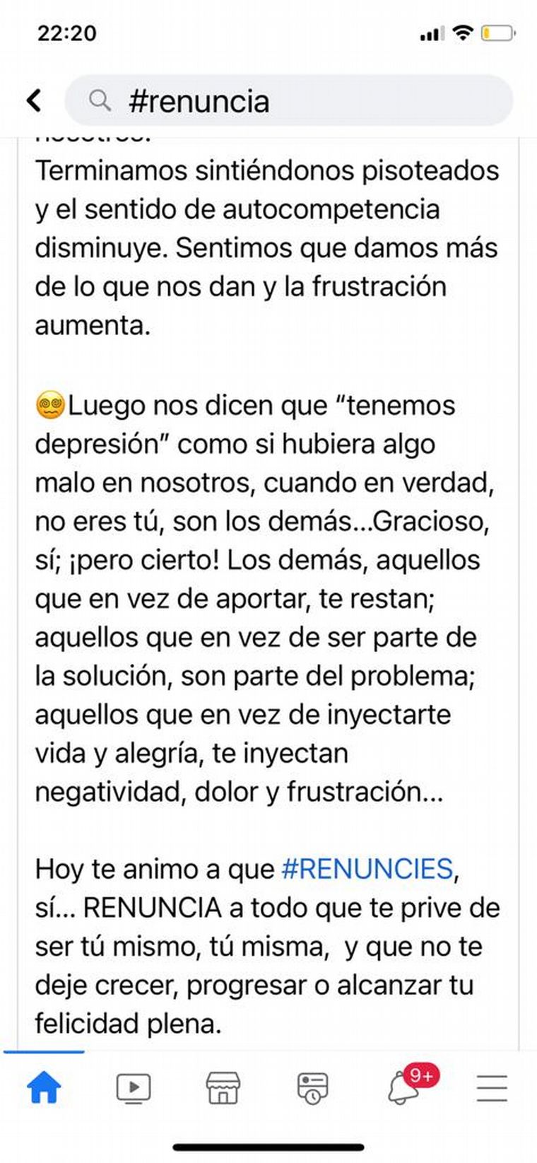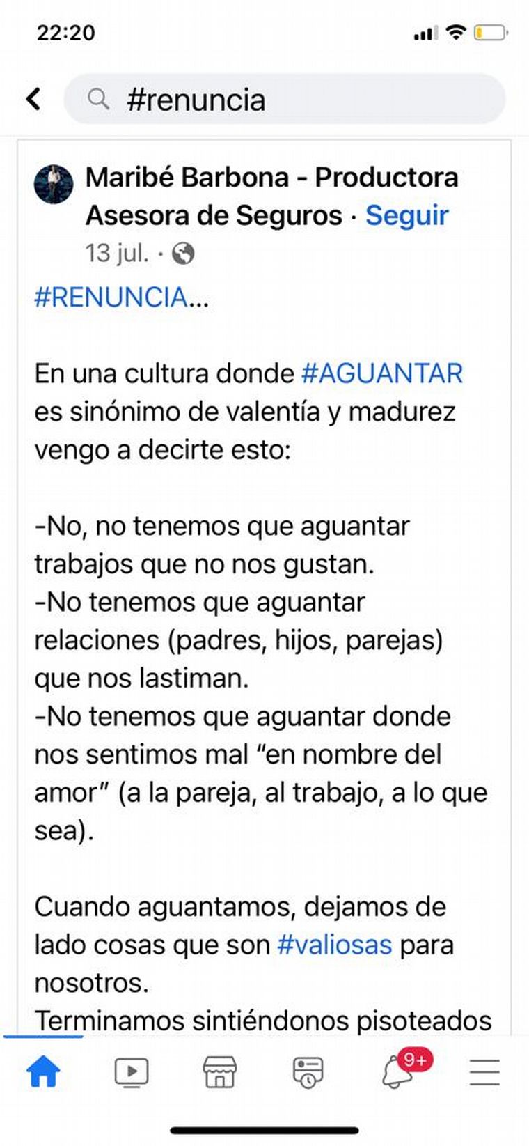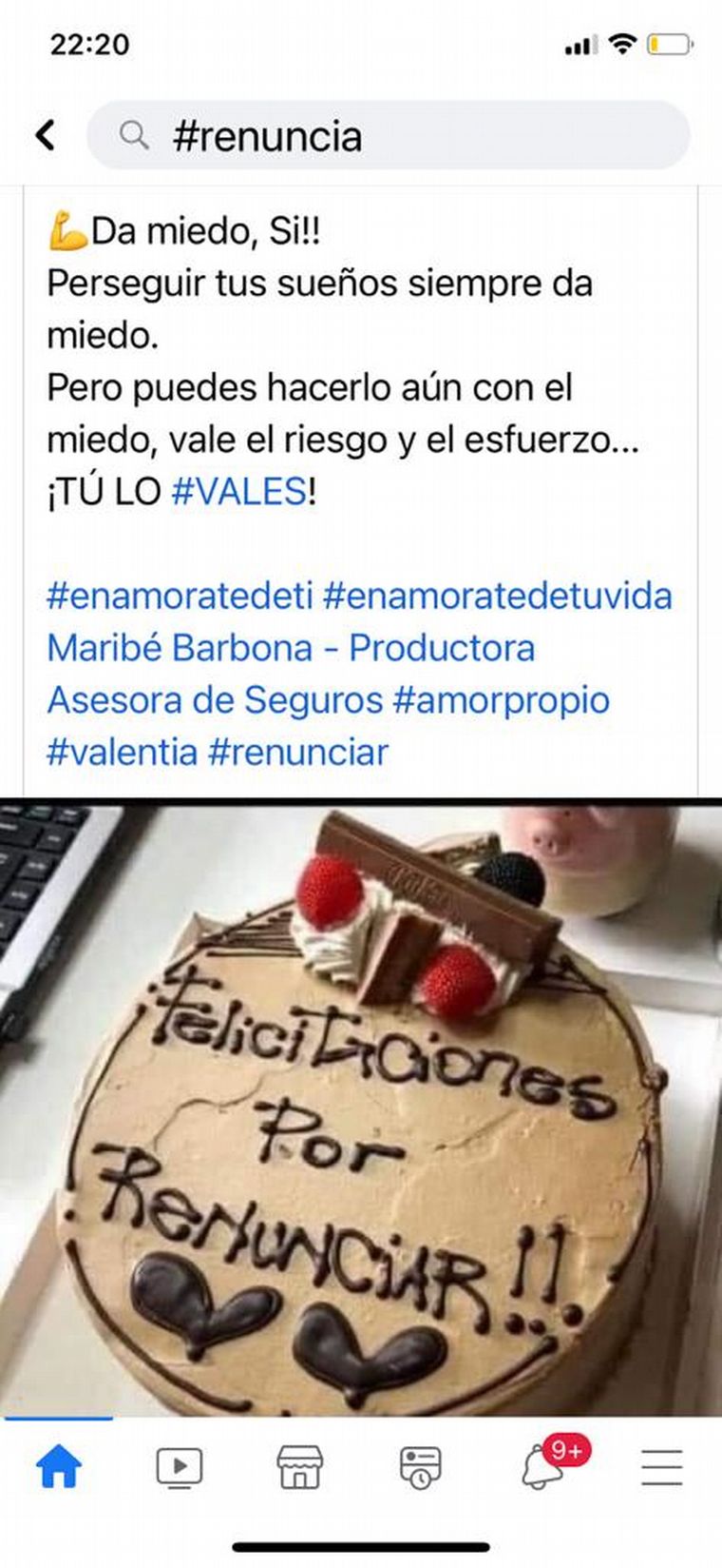 Además, Luna reposteó a una usuaria que hace alusión a renunciar como sinónimo de valentía y madurez. Luego de una serie de consideraciones sobre el tema, finaliza con la imagen de una torta con la leyenda "Felicitaciones por renunciar".