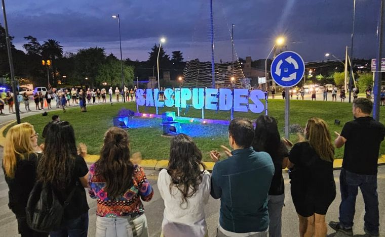 Por el femicidio de Andrea Aguirre en manos de Matías Aragone, los vecinos de Salsipuedes se movilizaron este martes en la plaza de ingreso a la ciudad.