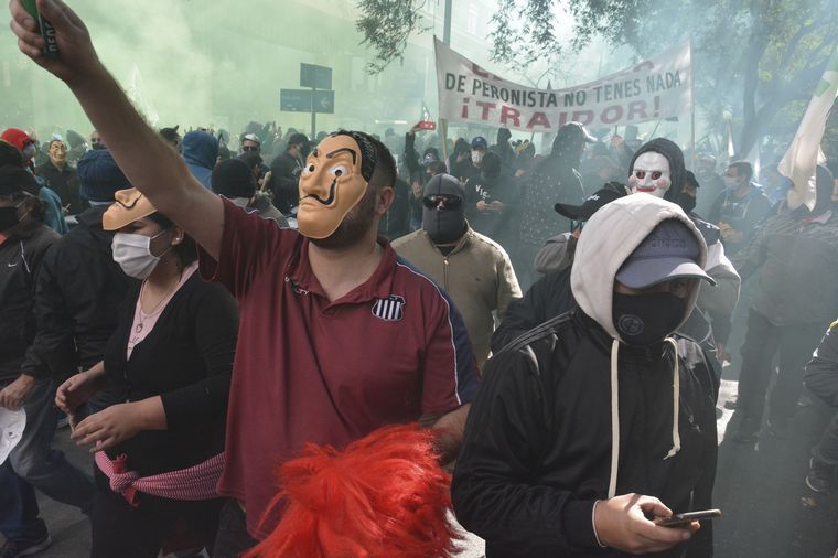 Y concluyó: “Tenemos un gobierno que da vueltas y vueltas para que pueda ir un trabajador con un pantalón y porlan a trabajar a una obra privada porque prácticamente es ‘un agente muy peligroso’ y no es tan grave una manifestación con miles de personas vociferando”.