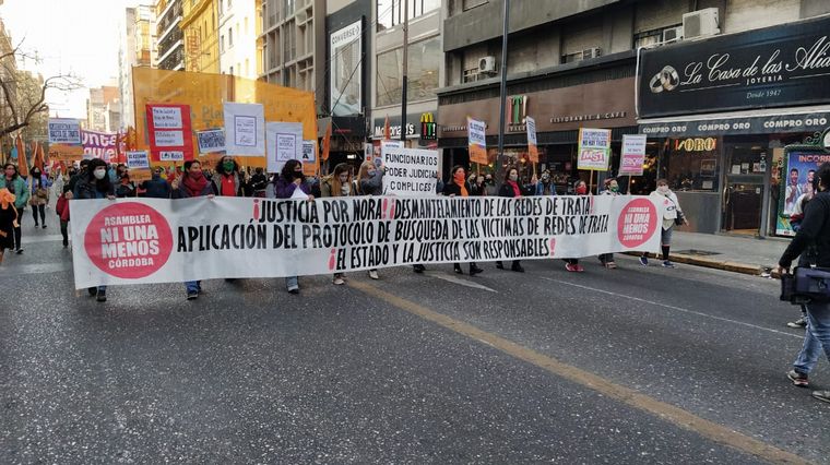 Organizaciones sociales marcharon este jueves por las calles del centro de Córdoba para pedir justicia por "Nora" (llamada así para proteger su identidad), presunta víctima de una red de trata de personas.