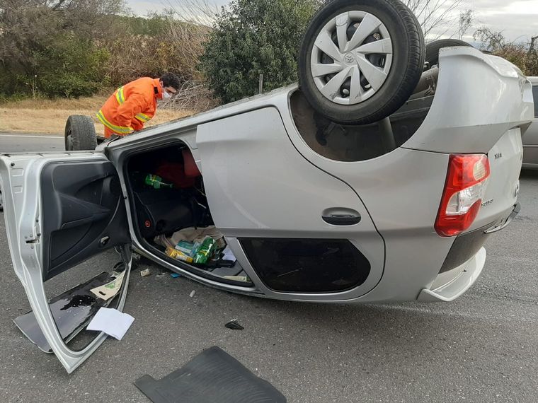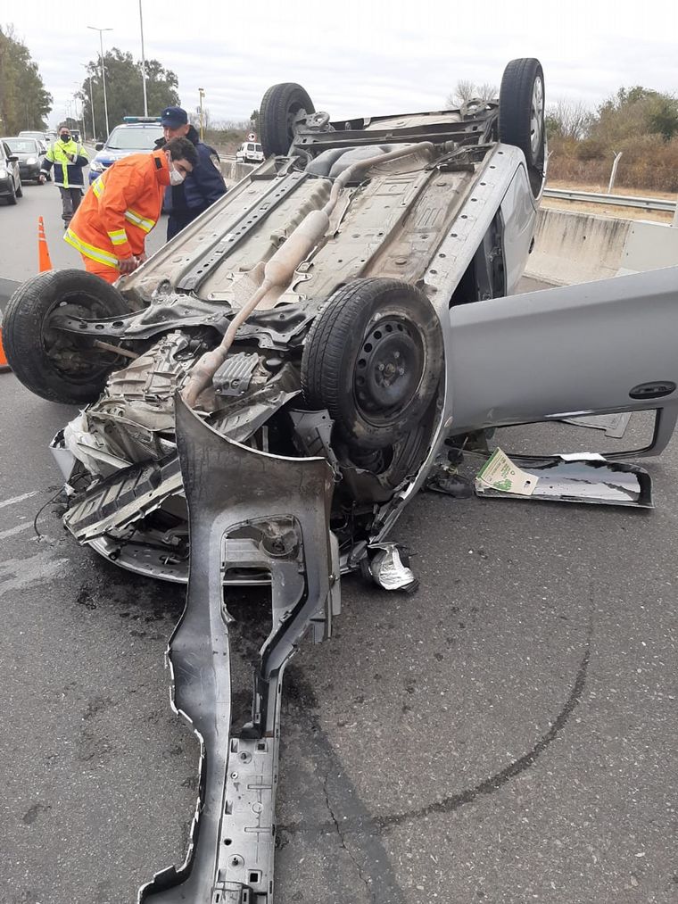 Producto del impacto, el auto volcó y quedó acostado sobre la calzada.
