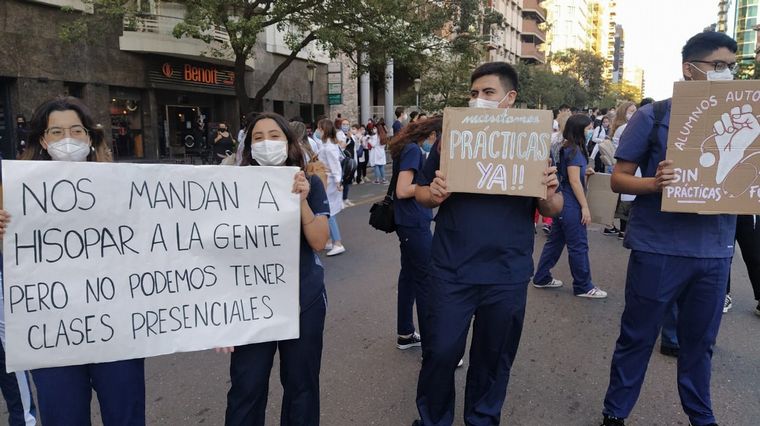 Cortaron durante un rato media calzada de la avenida Hipólito Yrigoyen frente al shopping Patio Olmos. Una de las estudiantes dijo a Cadena 3 que necesitan tener contacto con los pacientes.