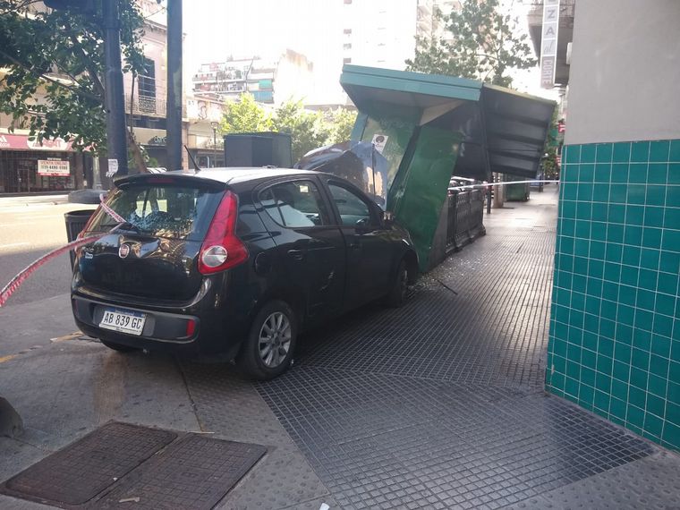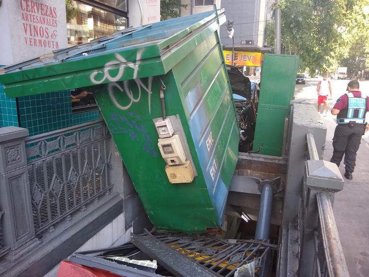 Sucedió en la intersección con avenida Medrano, a la altura de Almagro. La conductora del Fiat Palio se habría quedado dormida. El kiosco quedó encima de la estación de subte.