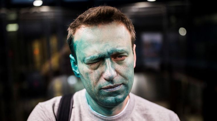 En 2017, Navalny fue hospitalizado por un antiséptico que le lanzaron en la cara.