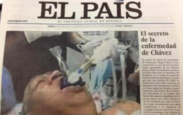 El País anunció la foto como "exclusiva mundial", y le colocó el epígrafe: "El presidente Chávez, durante el tratamiento médico recibido en Cuba", donde incluso colocan la leyenda "Prohibida su reproducción".