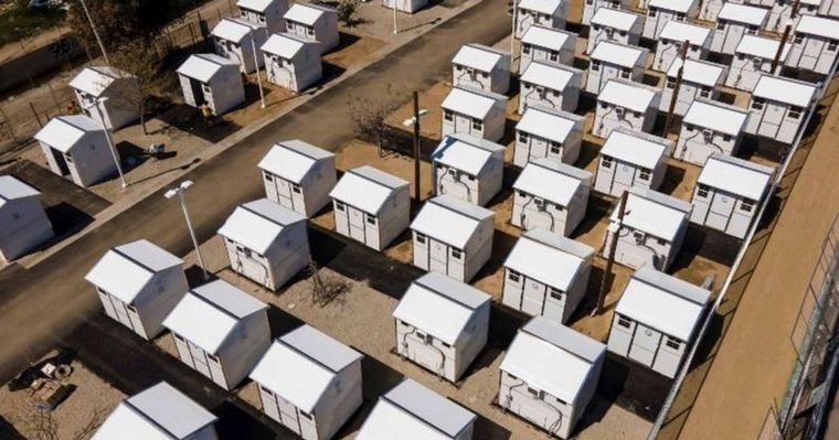 El gobierno de California instaló en Los Ángeles una aldea de casas prefabricadas, como parte de una iniciativa para ayudar a personas sin hogar a encaminar sus vidas.