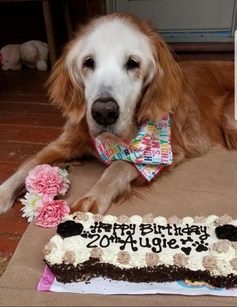 Augie es un perro de raza golden retriever que cumplió 20 años este abril y su aniversario fue muy celebrado, ya que aquella especie vive entre 10 y 12 años, según los expertos.