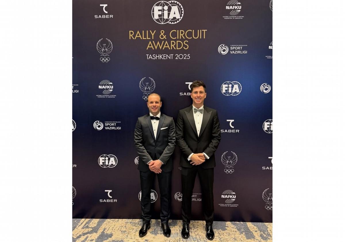 Juan Cruz Yacopini y su navegante español Daniel Oliveras recibieron su premio de Campeones Copa Mundial Baja2025 en la gala de FIA en Usbekistán, hace una semana