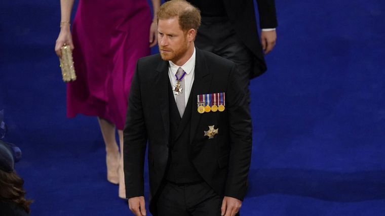 El príncipe Harry fue a la coronación de su padre, sin Meghan Markle y de civil