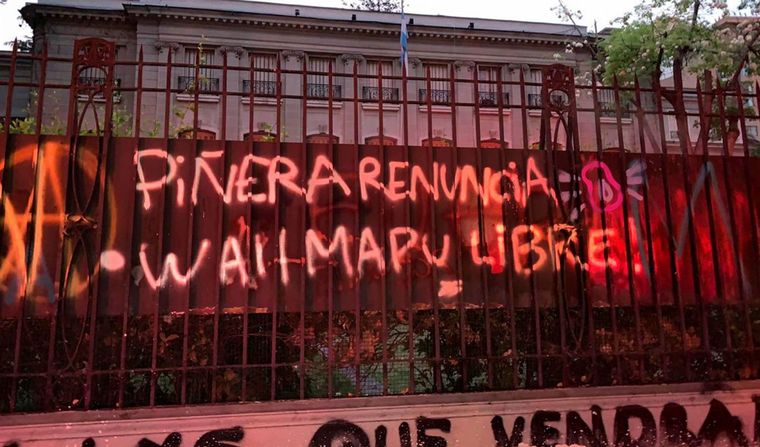 Un violento grupo de manifestantes atacó en la noche de este martes la residencia del embajador argentino en Chile, José Octavio Bordón, en el marco de las protestas que desde hace 26 días se registran en ese país contra las políticas del gobierno.