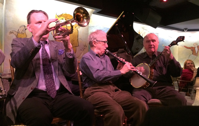 El lunes pasado a las 20.45 la locutora de Juntos se llegó hasta el Café Carlyle, uno de los hoteles más lujosos de la ciudad para ver al cineasta tocar junto a The Eddy Davis New Orleans Jazz Band.