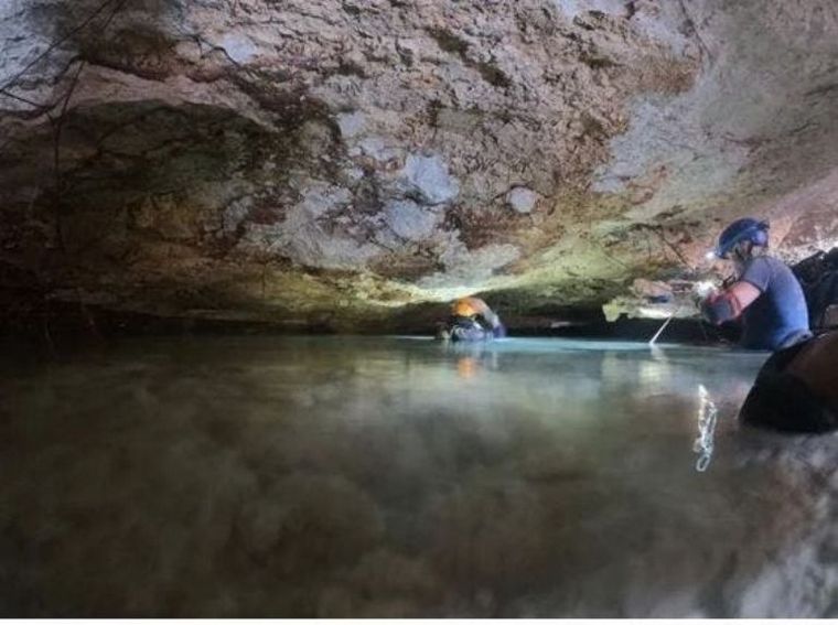 "Pueden estar presentes las dos especies de peces ciegos de la Península de Yucatán, la Dama Blanca (Typhliasina pearsei) y la anguila ciega (Ophisternon infernale)", consignaron además. También detectaron las raíces de cientos de árboles selváticos que caen directamente al agua de la caverna.