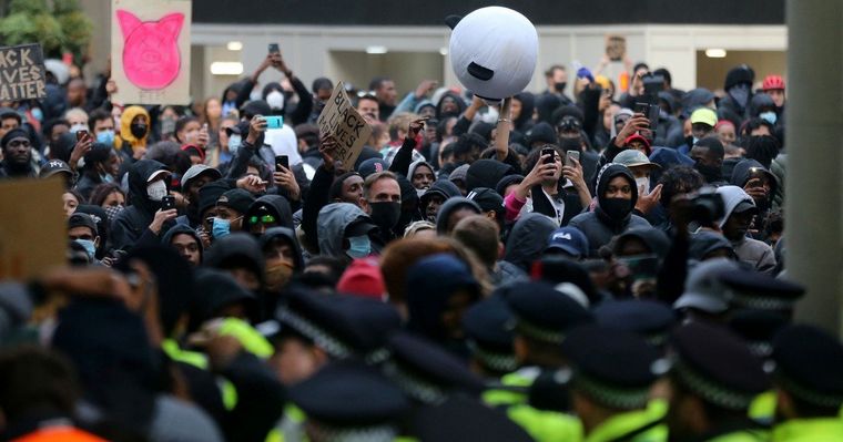 Miles de personas tomaron la calles para movilizarse por el crimen de George Floyd y la violencia policial en Inglaterra. Al menos 27 policías resultaron heridos durante los reclamos.