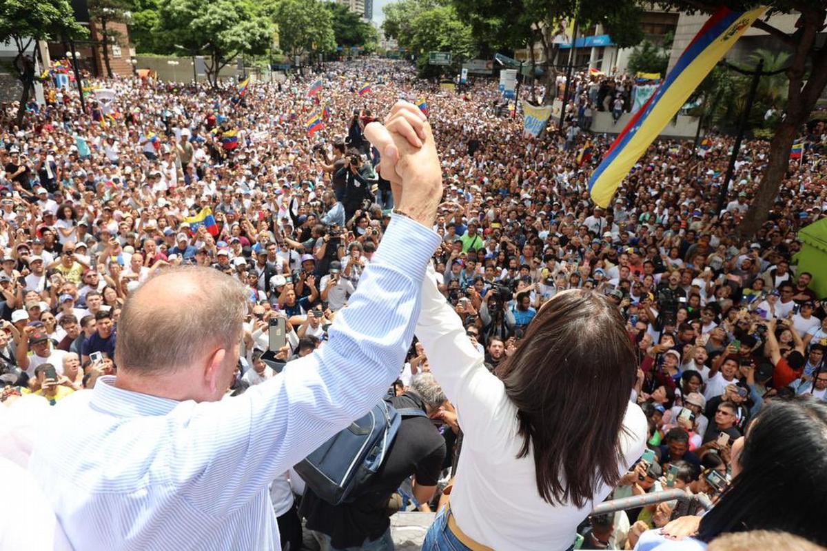 “Vamos a hacer que el régimen tenga que reconocer lo que el mundo entero sabe: Edmundo González Urrutia es nuestro próximo presidente. Se huele libertad en Venezuela”, enfatizó ante la multitud.