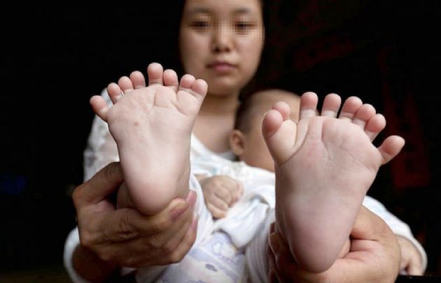 Si bien dos de cada mil niños nacen con este desorden genético, este es un caso hereditario, pues la madre de Hong Hong también sufre de la condición y tiene seis dedos en cada mano y pie.