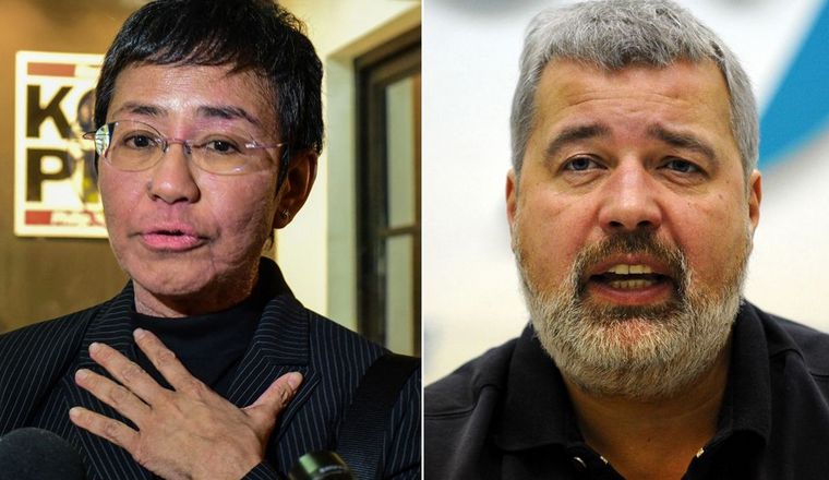 Maria Ressa y Dmitry Muratov recibieron el galardón por a su lucha por la libertad de expresión.
