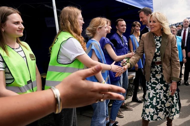 Previamente, Jill Biden recorrió zonas fronterizas en Eslovaquia, donde pasó por sitios de ayuda a refugiados. También visitó una escuela pública que brinda asistencia.