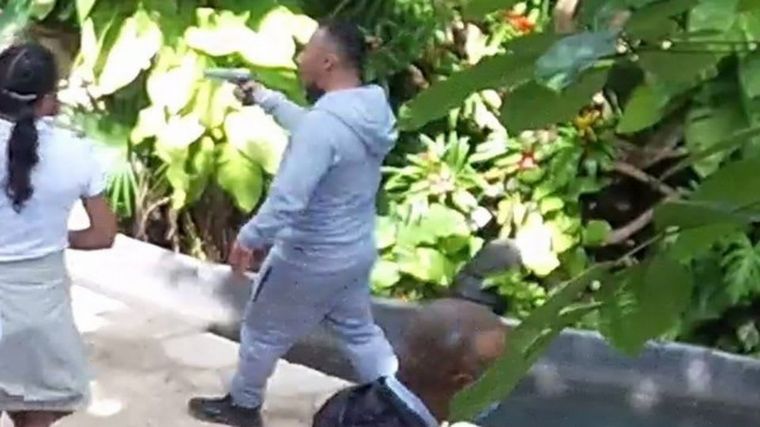 A las 14:34:56 horas, cinco disparos consecutivos se escucharon en el Hotel Xcaret, provocando pánico y desconcierto entre los huéspedes, que corren a refugiarse. El momento fue captado por @webcamsdemexico https://t.co/8IGXaCYfju pic.twitter.com/bLGkw4gmnD