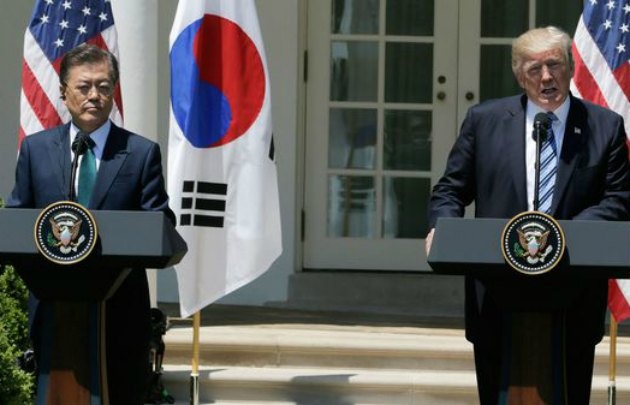 "Estamos trabajando de cerca con Corea del Sur y Japón en una serie de medidas diplomáticas, de seguridad y económicas para proteger a nuestros aliados y ciudadanos de esa amenaza llamada Corea del Norte", dijo Trump a la prensa después de reunirse con el presidente surcoreano, Moon Jae-in.
