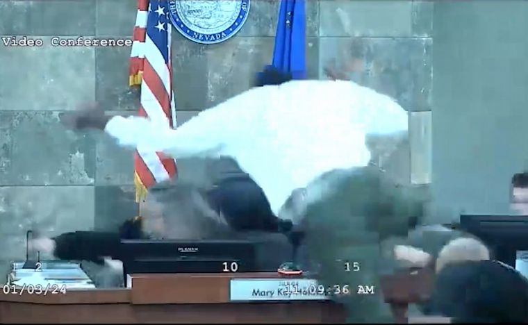 Ocurrió en el condado de Clark, Nevada, Estados Unidos. La magistrada, Mary Kay Holthus, fue agredida por el sujeto, que saltó sobre su escritorio y se abalanzó sobre ella al escuchar su veredicto.