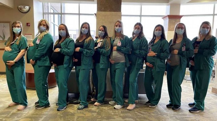 Un hospital de Missouri, Estados Unidos, fue noticia porque 10 enfermeras de parto están embarazadas al mismo tiempo.