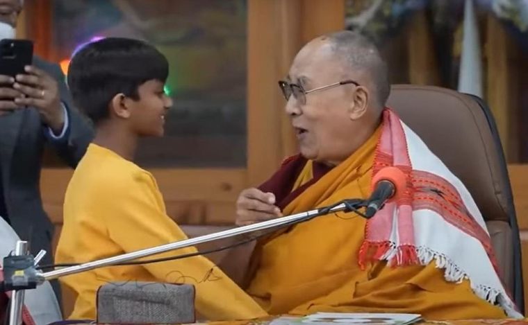 Video: el Dalai Lama se disculpó por besar en la boca a un niño