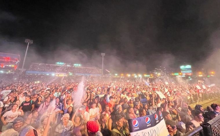 El cantante cordobés y su par riojano, lograron este martes otro estadio repleto. Los Carabajal, los otros destacados. Sigue la competencia de jineteada. Transmisión de Cadena 3.