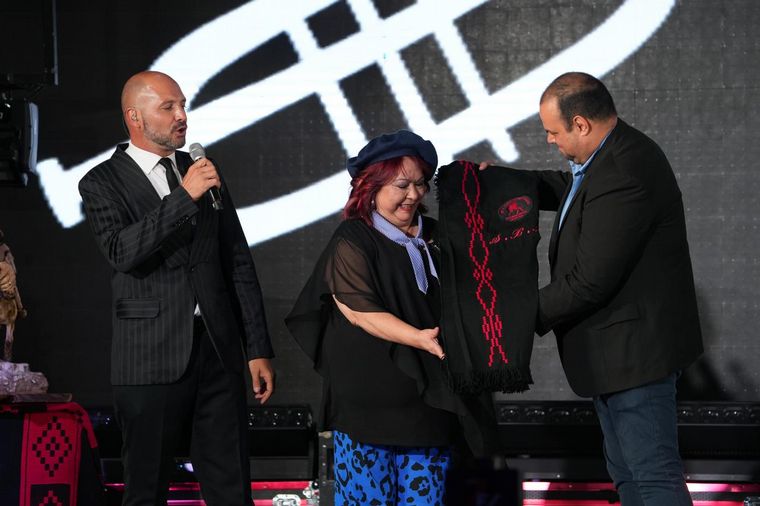 Ya debajo del escenario y con visible emoción, la conductora añadió: “Es un orgullo este poncho. Es el segundo que recibo. Es el reconocimiento de muchas horas de trabajo, de acompañar a los cantores populares y a los artesanos”.