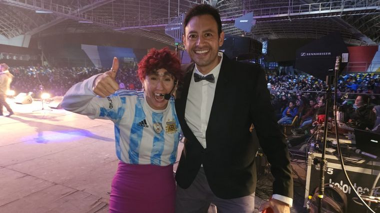 "La Bicho" junto a Raúl Monti, maestro de ceremonias.