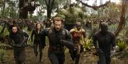 Robert Downey Jr. (Iron Man), Chris Evans (Capitán América), Chris Hemsworth (Thor), Chris Pratt (Starlord), Scarlett Johansson (Viuda Negra), Tom Hiddleston (Loki), Zoe Saldana (Gamora), Benedict Cumberbatch (Dr. Strange), Tom Holland (Spider-Man), Paul Bettany (Visión) y hasta el recién llegado Chadwick Boseman (Pantera Negra), entre muchos otros, asumen de forma inevitable su rol secundario ante Thanos.