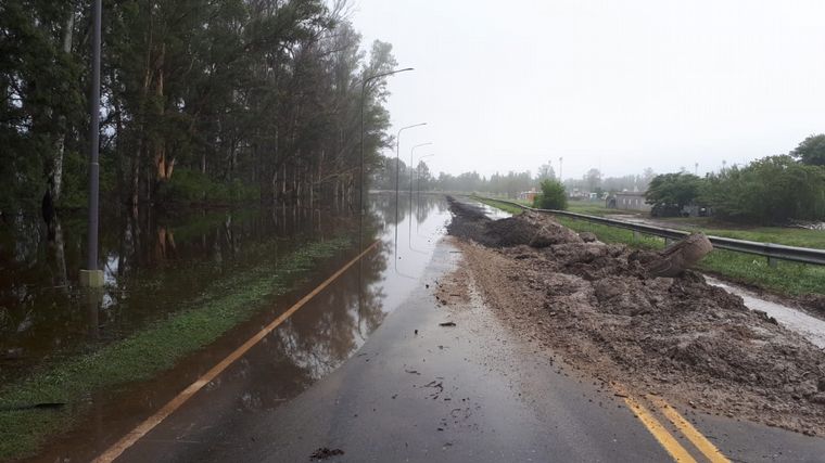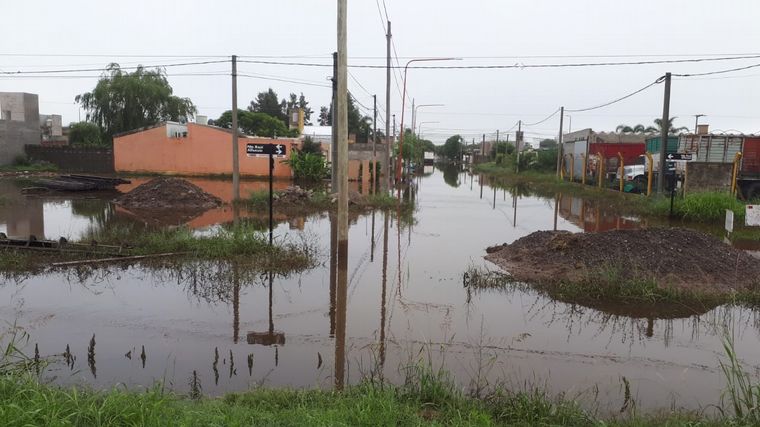 Otro de los barrios más afectados por las intensas lluvias fue Hipotecario, que se encuentra en la zona más baja de la ciudad. La Policía Caminera trabaja en la zona e informó que rige una restricción del tránsito pesado.