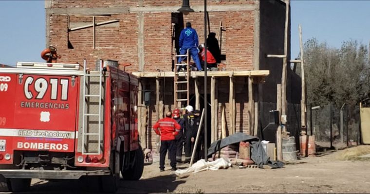 En ese momento, llamaron al servicio de emergencias y a los Bomberos, que llegaron hasta el lugar y tuvieron que usar una camilla para trasladar al hombre desde la losa del entrepiso hasta la ambulancia.
