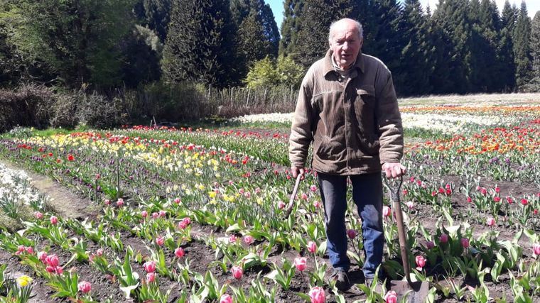 Pedro Semekal es el propietario de Chacra Danubio, un lugar en las afueras de Bariloche, donde desde hace 50 años cultiva tulipanes.