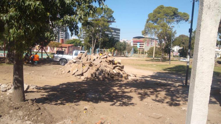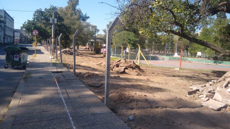 Los primeros movimientos de suelo en el parque se iniciaron en las veredas laterales, para trazar el cerramiento del alambrado perimetral de alrededor de 500 metros, entre las calles Lavalleja y Roque Sáenz Peña.