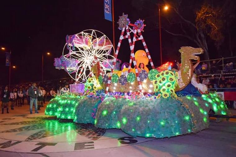 Diferentes escuelas de toda la provincia prepararon casi 70 estructuras con materiales reciclables que desfilaron por el corsódromo.